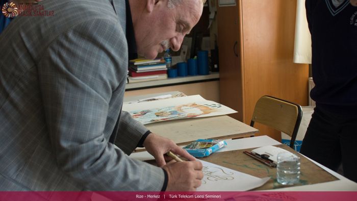 17 Nisan 2014 Perşembe günü Rize Türk Telekom Güzel Sanatlar Lisesinde Prof.Dr.Zeki Kuşoğlu ve Ahmet Zeki Yavaş Hocalarımız "Klasik Sanatlarımız" adlı seminer verdi. Hatatt Erol Balcı ve Müzeyyibe Elmas Karafazlı Hocalarımız da öğrencilere kısa bir eğitim verdi.